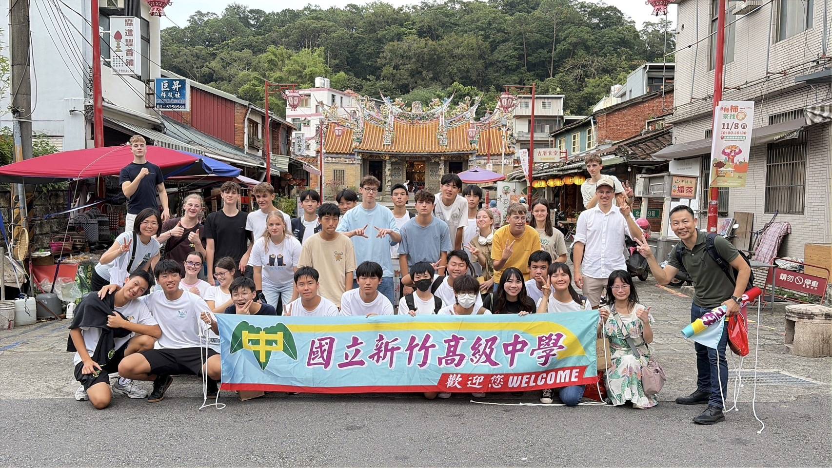 本校於2025年10月26日至11月2日接待來自德國維蘭德文理中學(Wieland-Gymnasium)的師生共15人,展開為期一週的國際交流活動。開幕式上,德國學生獻唱兩首歌曲,其中中文歌曲〈明天會更好〉象徵對兩校情誼的祝福與延續,氣氛感人溫馨。 本次交流課程設計多元,校內課程包括手作蔥油餅、牛軋糖、熱縮片鑰匙圈等臺灣特色文化體驗;德國學生亦參與本校高二德文選修課及以SDGs(永續發展目標)為主題的跨領域課程,與本校學生共同學習、互動交流。校外參訪活動則包含春池玻璃工藝館、台積創新館、南寮17公里海岸線生態導覽、綠世界生態農場及北埔老街文化導覽等,藉由中英文導覽介紹,深化德國學生對臺灣自然與人文風貌的理解。 透過本次交流,不僅提升本校學生的國際視野與語言運用能力,也讓德國師生深刻感受臺灣教育的熱情與多元。雙方互動密切、收穫豐碩,建立起跨文化的珍貴友誼,為未來兩校持續合作與深化交流奠定良好基礎。