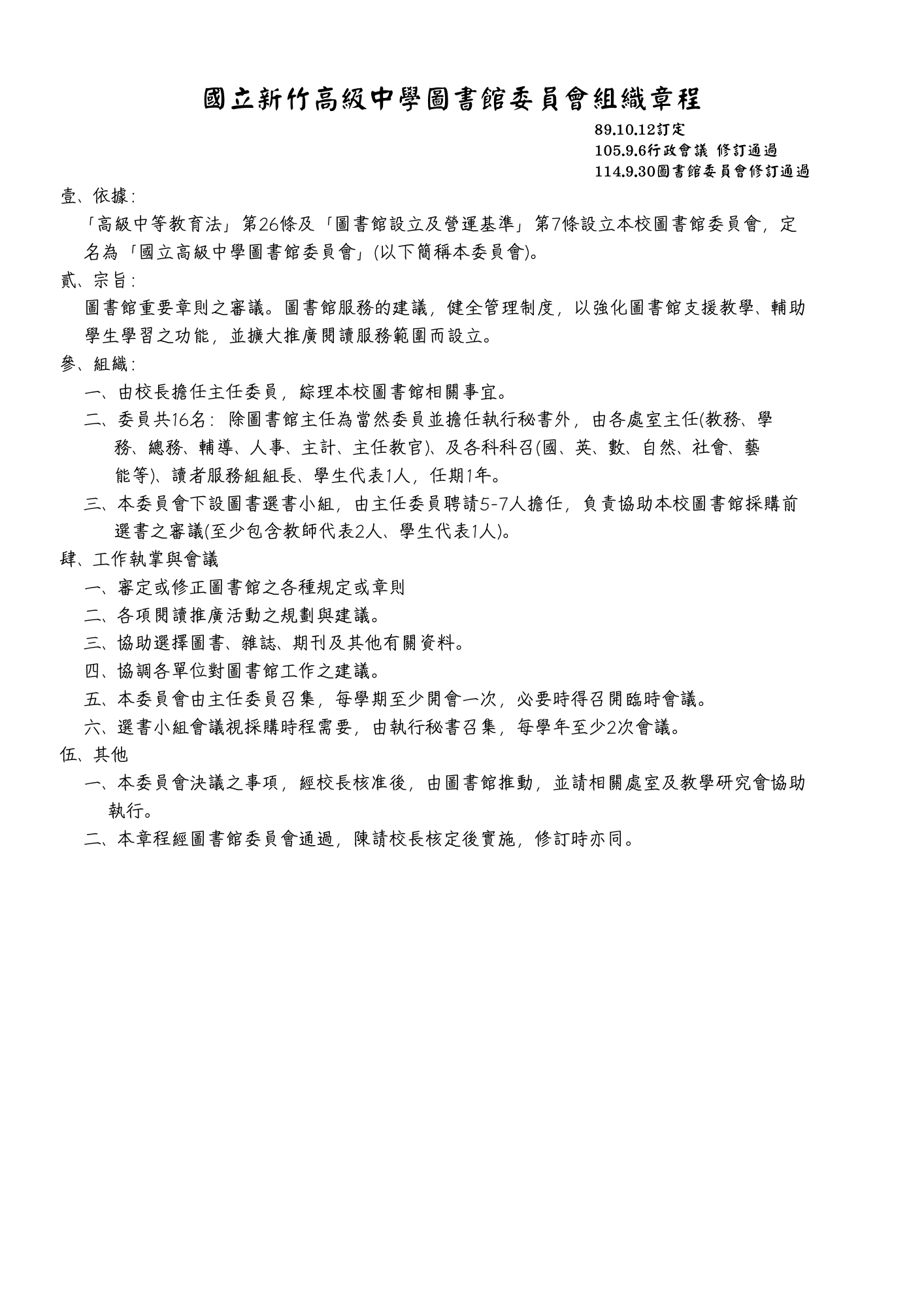 國立新竹高級中學圖書館委員會組織章程